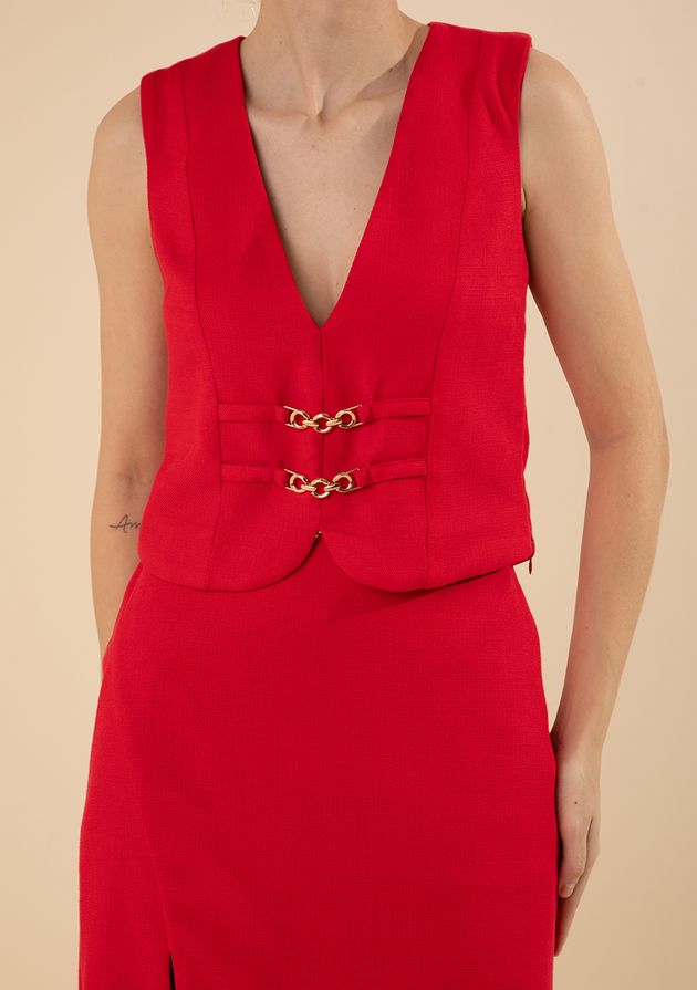 Regata Morena Rosa Ajustada Decote V Cropped Vermelho
