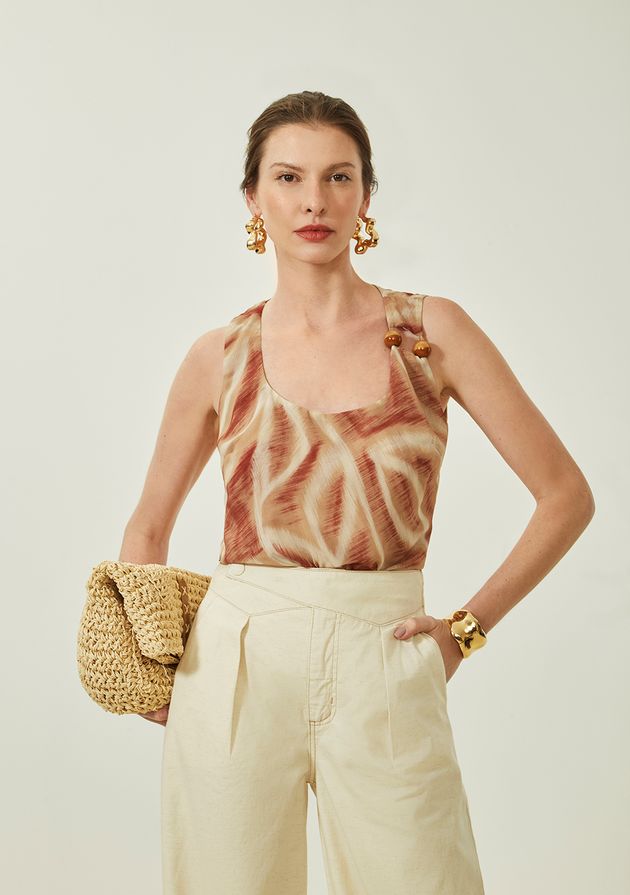 Regata Maria.Valentina Solta Decote Quadrado Padrão Marrom