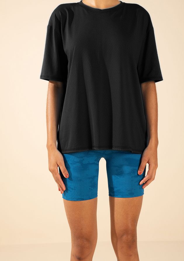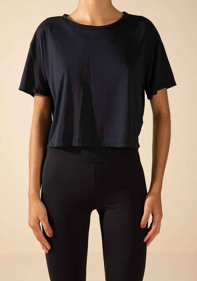 Blusa Morena Rosa Solta Decote Careca Manga Curta Cropped Preto