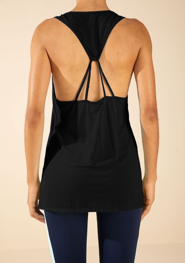 Regata Morena Rosa Solta Decote Careca Padrão Preto