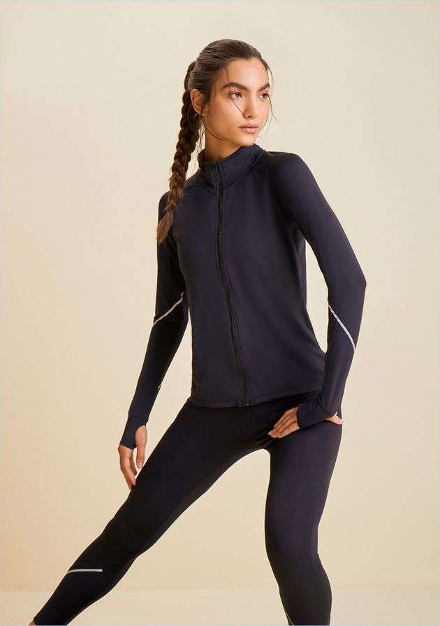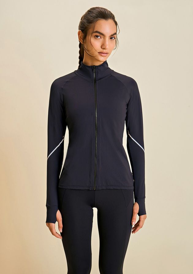 Jaqueta Morena Rosa Ajustada Manga Longa Padrão Preto