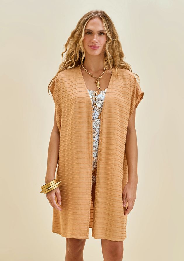 Vestido Morena Rosa Solto Decote V Manga 7 Oitavos Midi Marrom