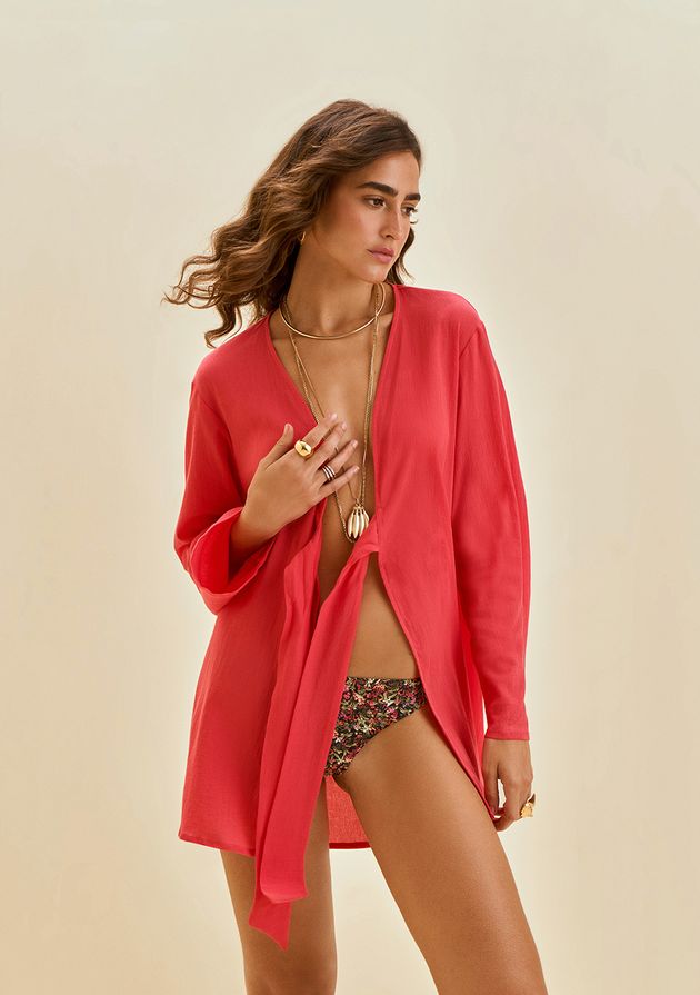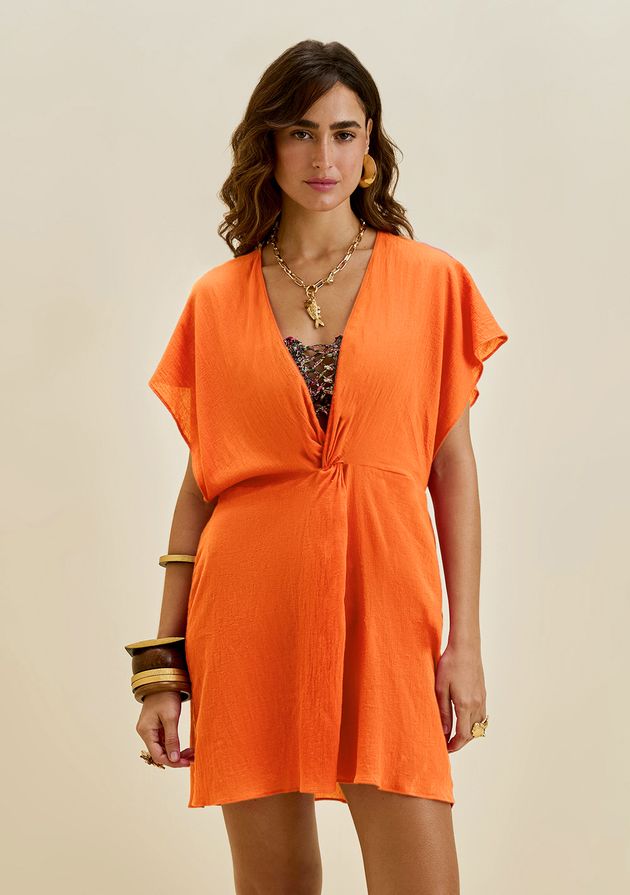 Kaftan Morena Rosa Solto Manga 3 Quartos Padrão Laranja
