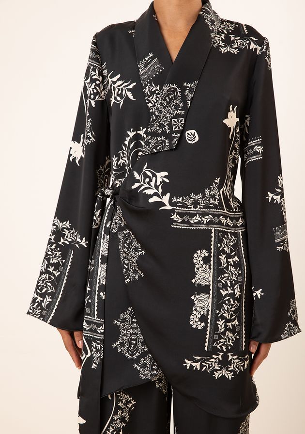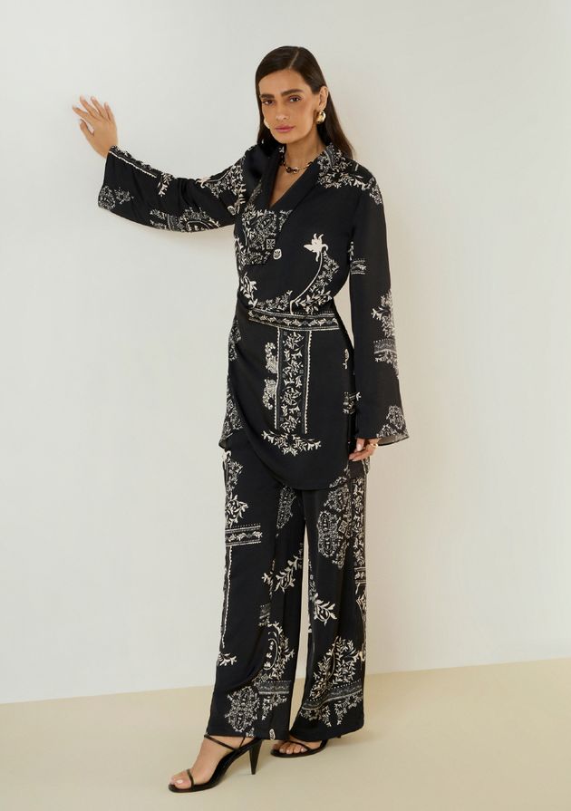 Blazer Maria.Valentina Ajustado Manga Longa Alongado Preto