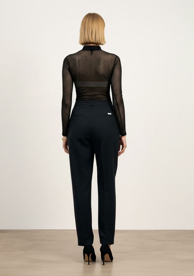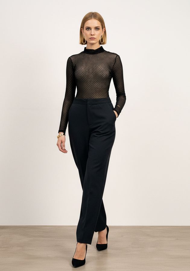 Blusa Ajustada Gola Alta Manga Longa Padrão Preto