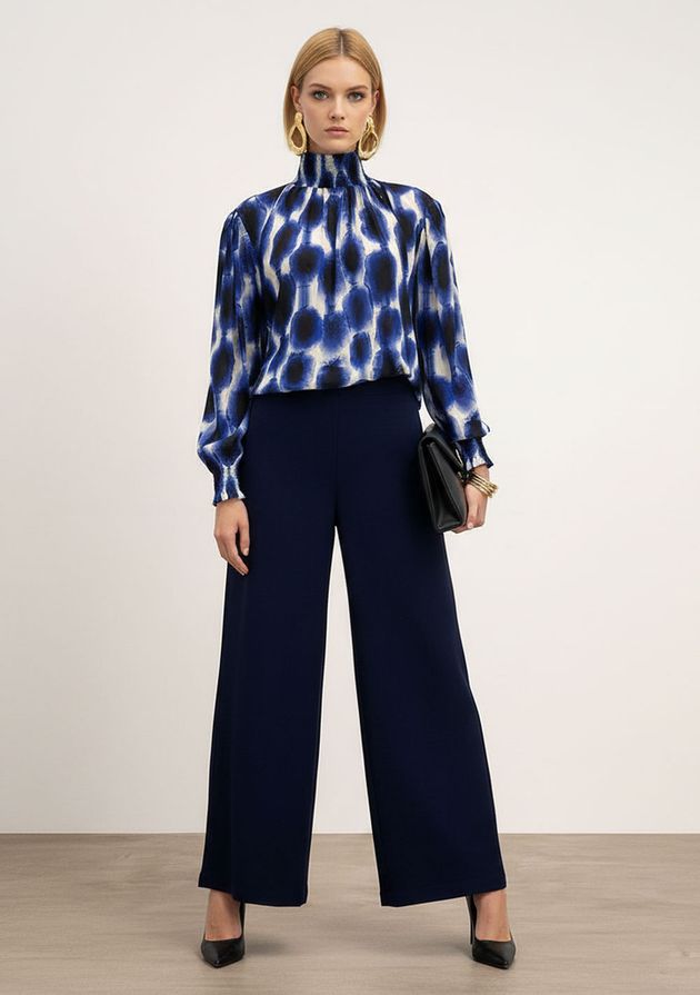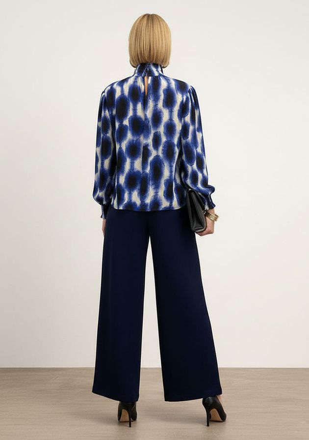 Blusa Solta Gola Alta Manga Longa Padrão Azul