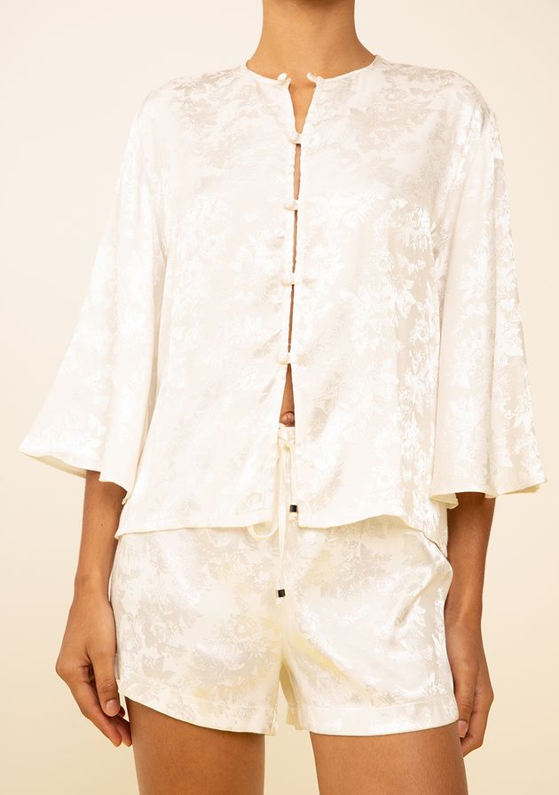 Blusa Zinco Solta Decote Careca Manga 3 Quartos Padrão Off White