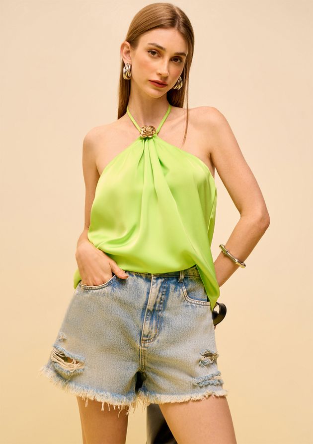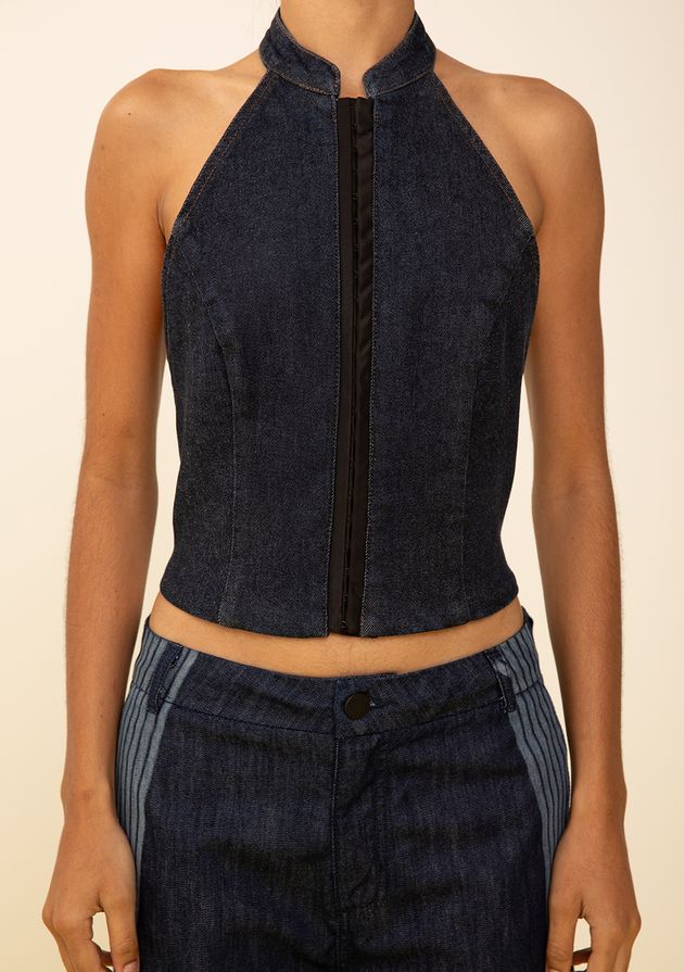 Top Zinco Gola Alta Sem Alça Azul