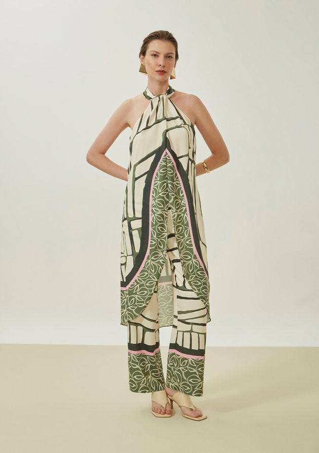 Blusa Maria.Valentina Solta Decote V Manga Curta Alongada Bege