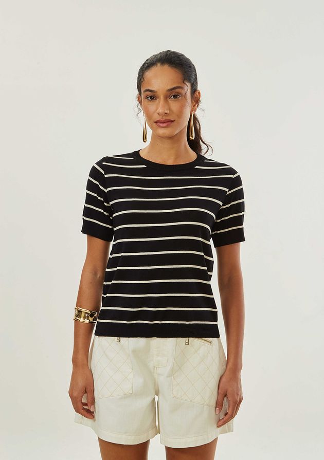 Blusa Maria.Valentina Ajustada Decote Careca Manga Curta Padrão Preto
