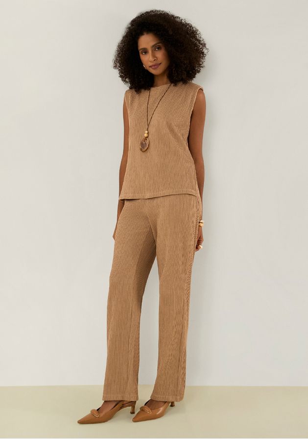 Blusa Maria.Valentina Ajustada Decote Careca Sem Alça Padrão Marrom