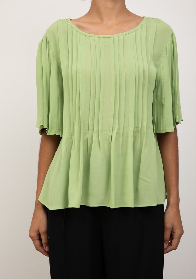 Blusa Iódice Solta Decote Careca Manga Curta Padrão Verde