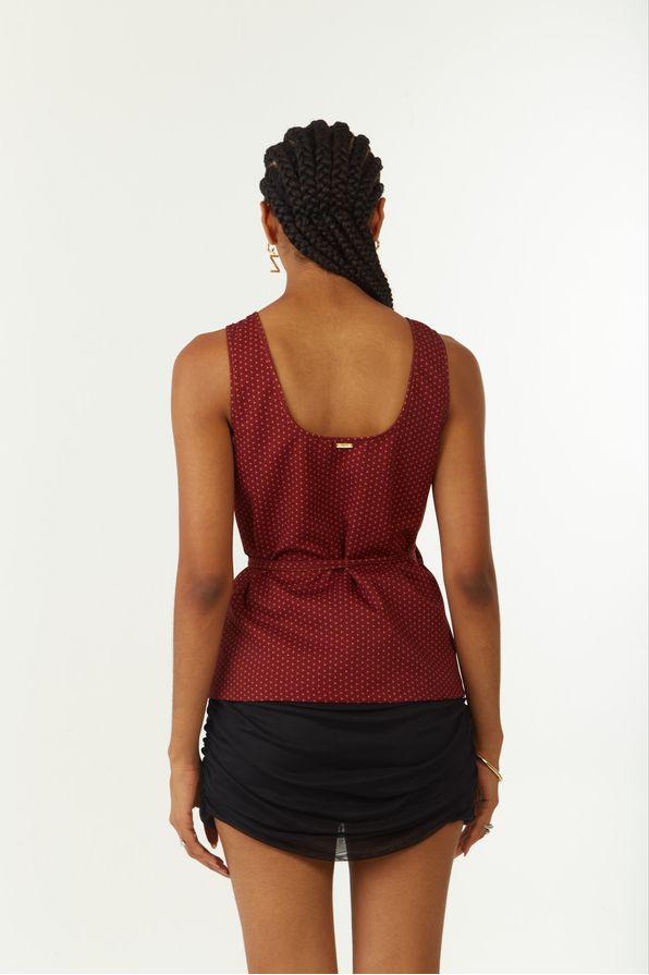 Regata Zinco Ajustada Decote Transpassado Padrão Bordo