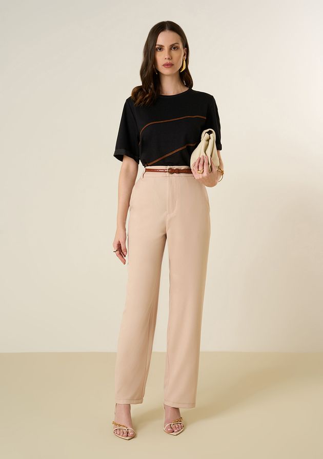 Blusa Maria.Valentina Solta Decote Careca Manga Curta Padrão Preto