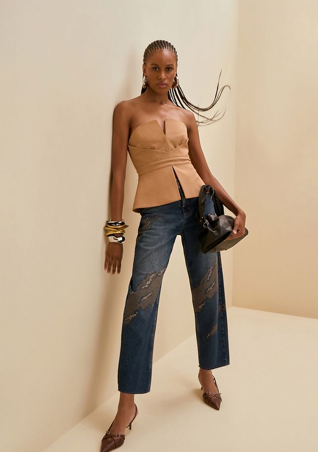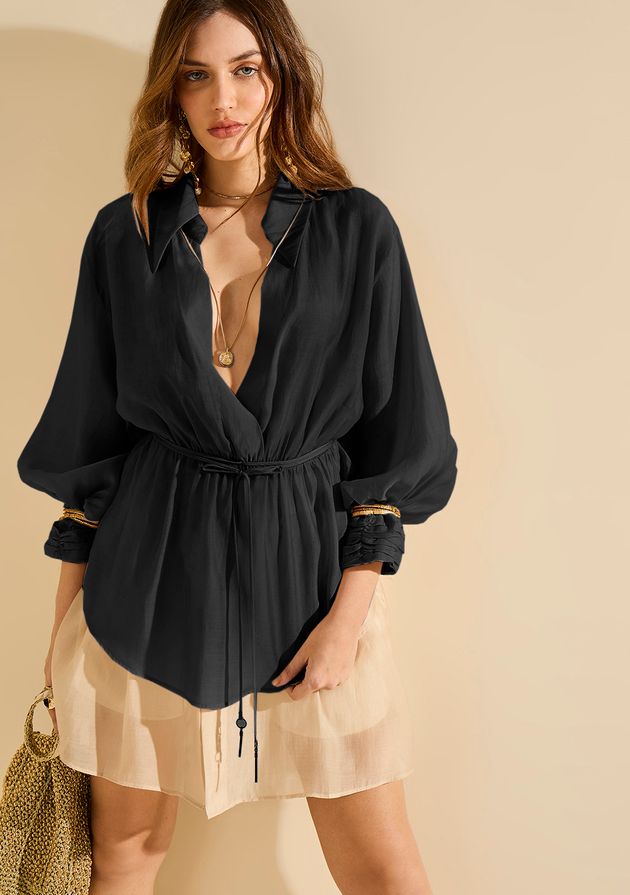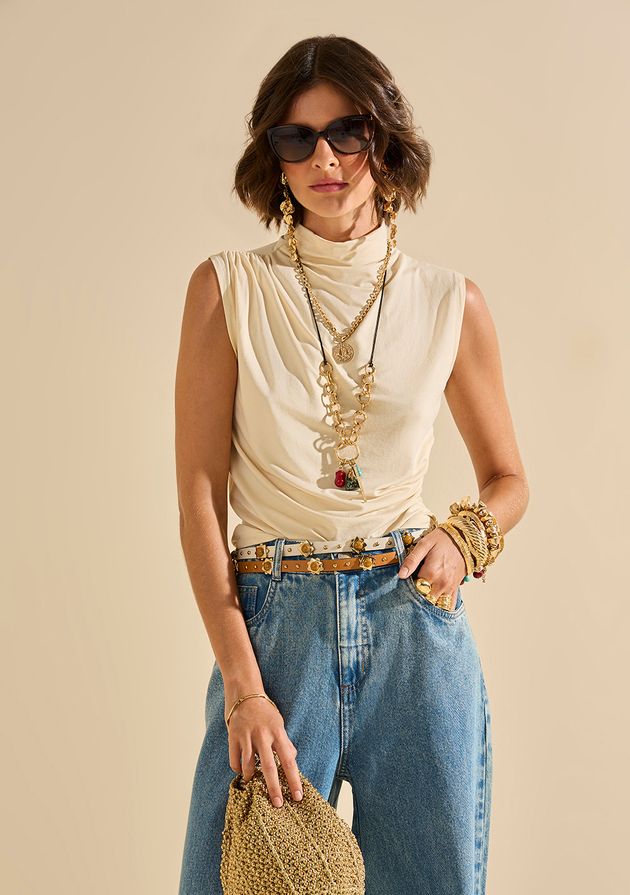 TamanhoPPPAdicionar à sacolaBlusa Maria.Valentina Ajustada Decote Careca Manga Curta Padrão Off White
