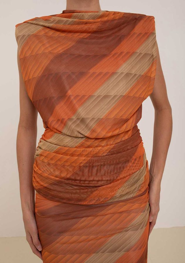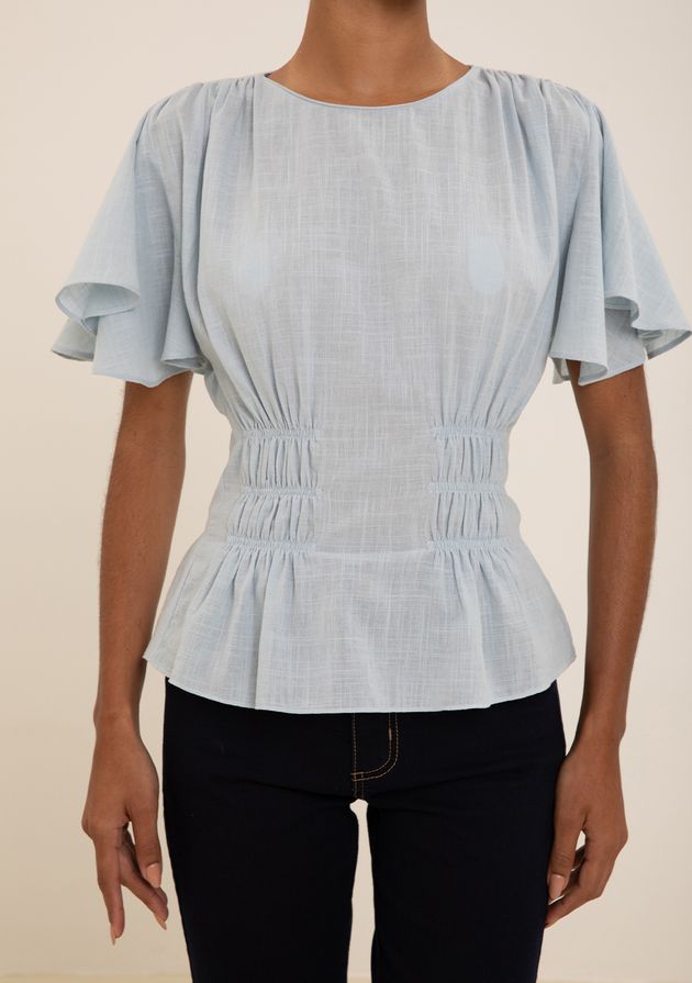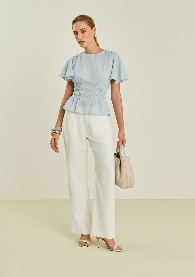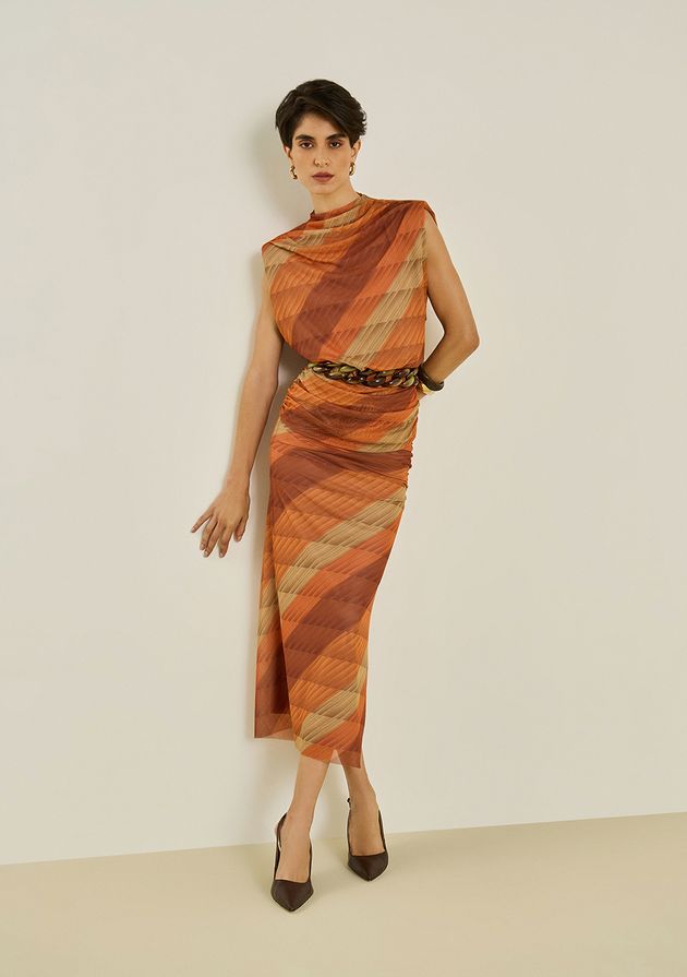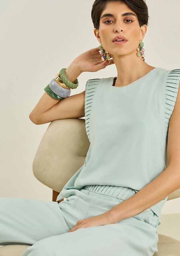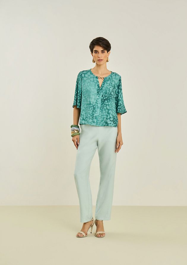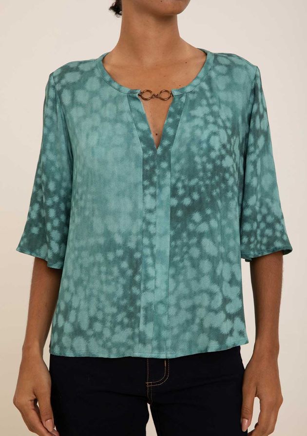 TamanhoGMPPPAdicionar à sacolaBlusa Maria.Valentina Ajustada Decote Careca Manga Curta Padrão Dourado