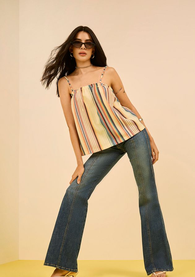 Regata Zinco Solta Decote Quadrado Padrão Amarelo