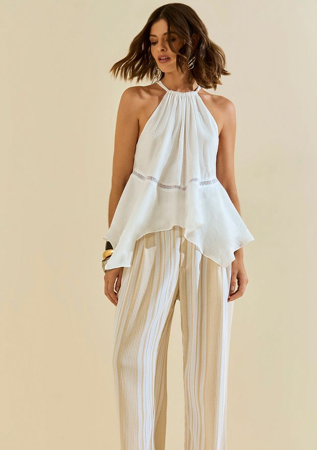 Regata Morena Rosa Solta Cava Francesa Padrão Off White