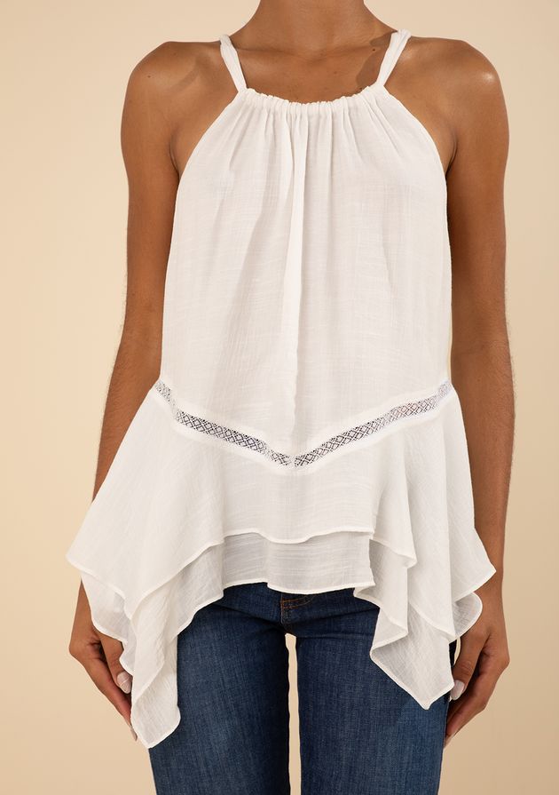 Regata Zinco Solta Decote Quadrado Padrão Azul
