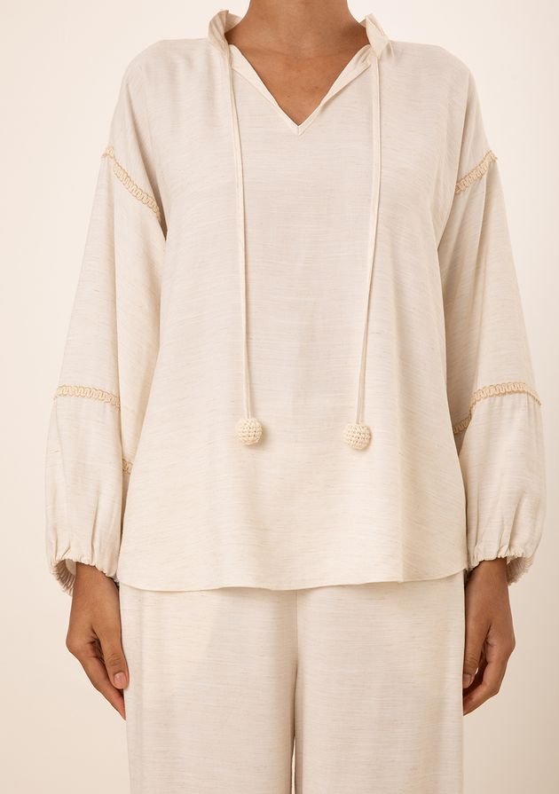 TamanhoGMPPPAdicionar à sacolaBlusa Maria.Valentina Solta Decote Transpassado Manga Longa Padrão Off White