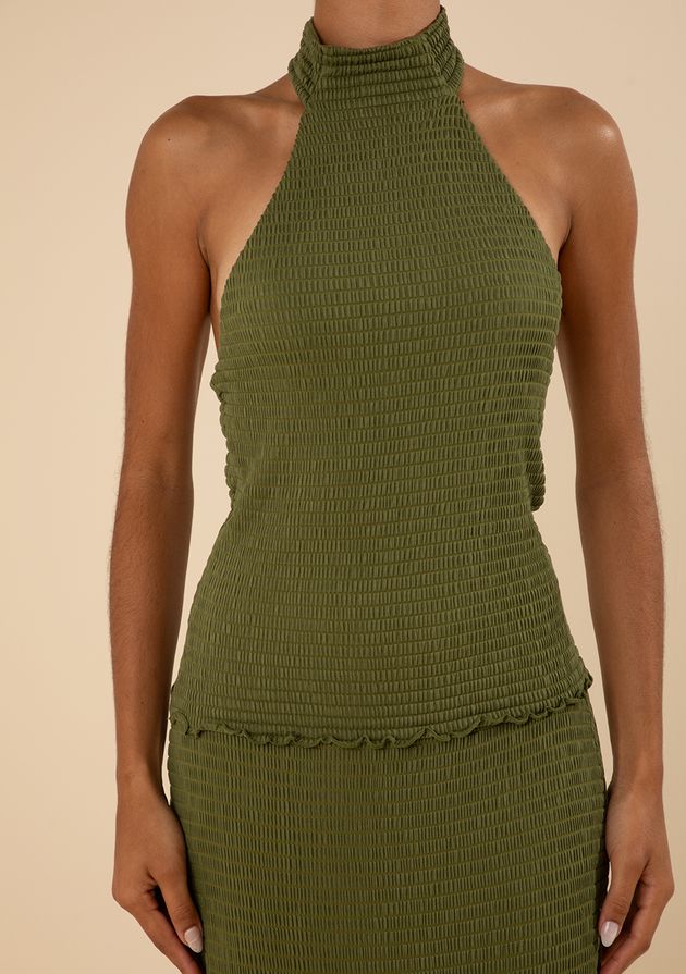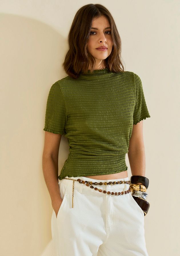 Blusa Morena Rosa Ajustada Decote Careca Manga Longa Padrão Verde