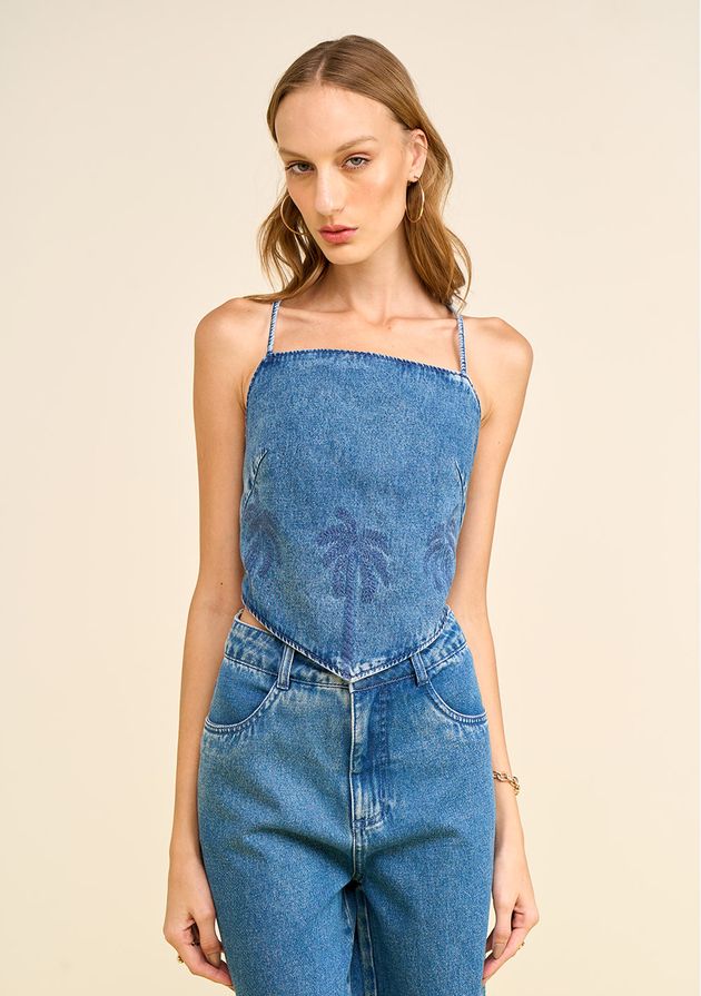 Regata Zinco Ajustada Decote Careca Padrão Azul