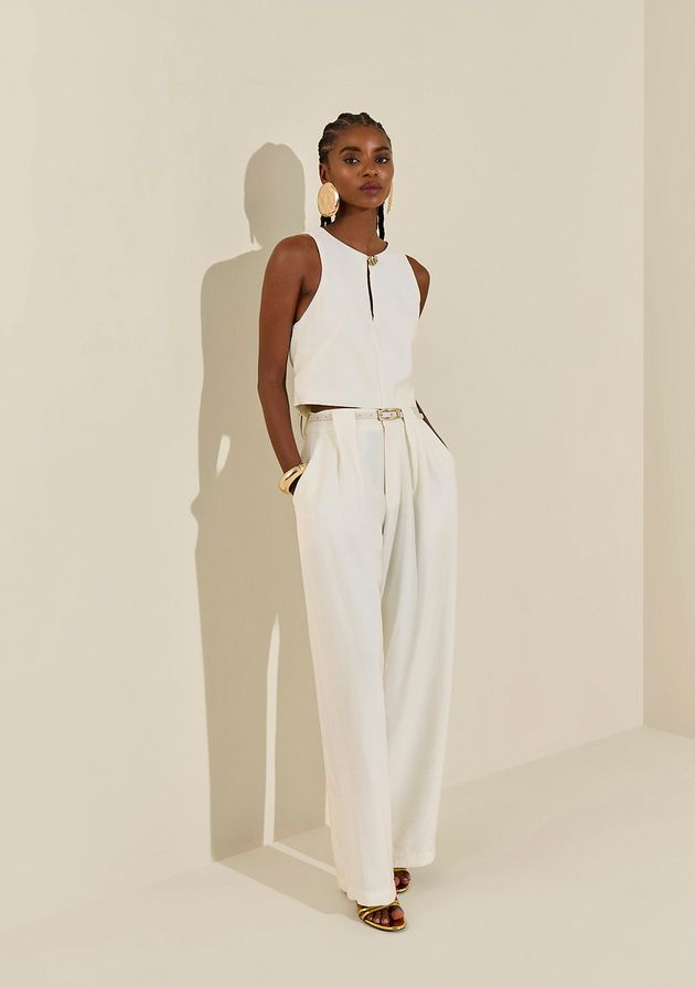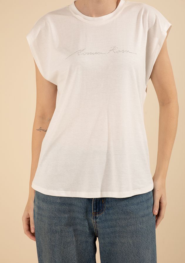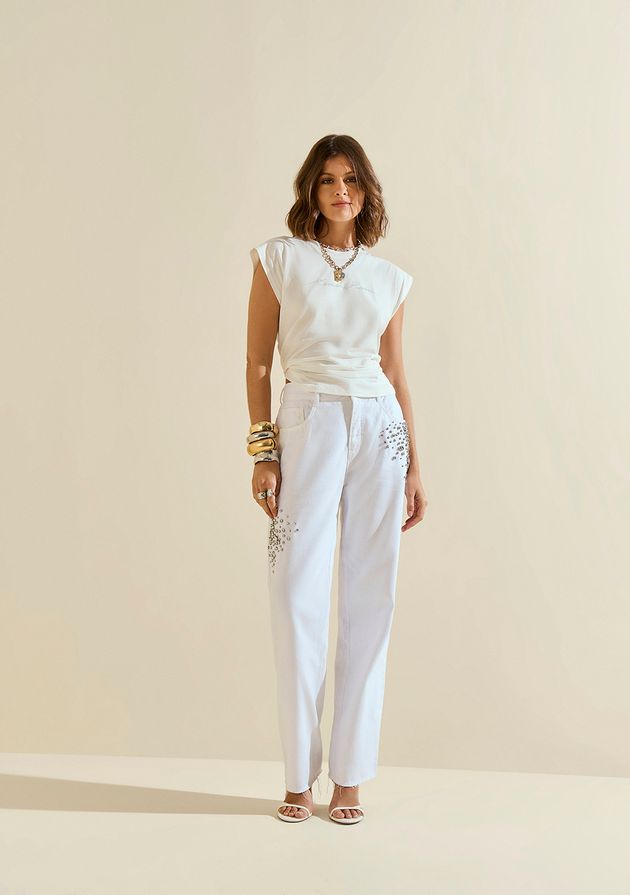 Regata Morena Rosa Ajustada Decote Careca Cropped Off White