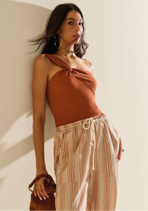 Body Morena Rosa Um Ombro Só Sem Manga Marrom