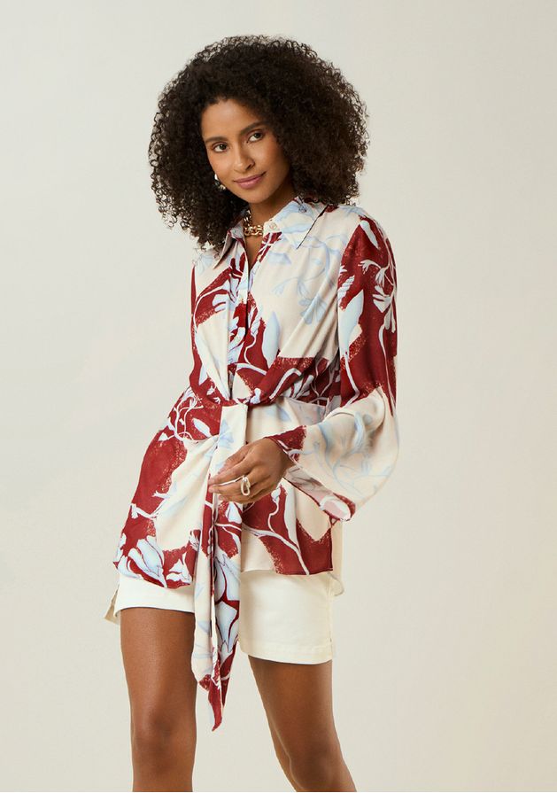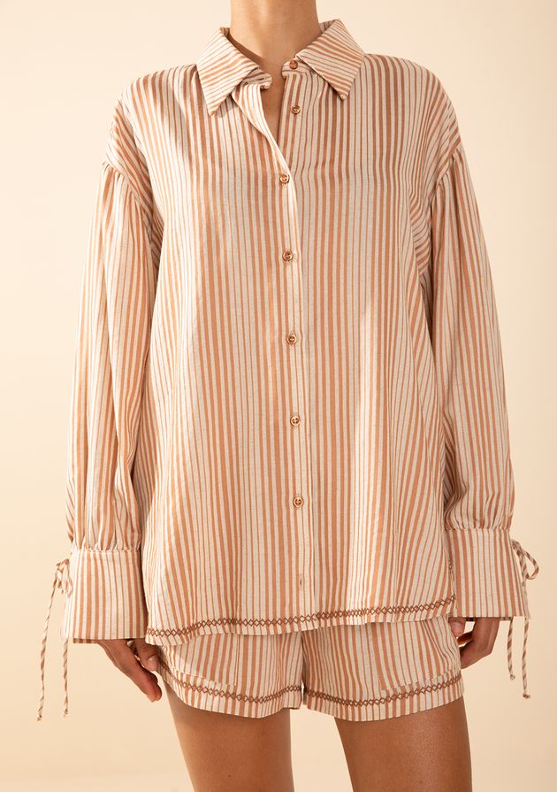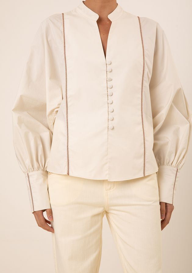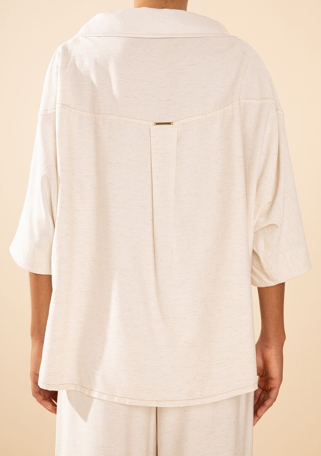 TamanhoMPAdicionar à sacolaCamisa Morena Rosa Oversized Decote Canoa Manga 3 Quartos Alongada Off White
