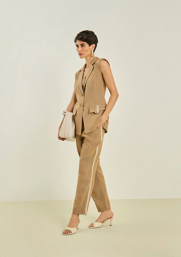 Colete Zinco Ajustado Sem Manga Padrão Bege