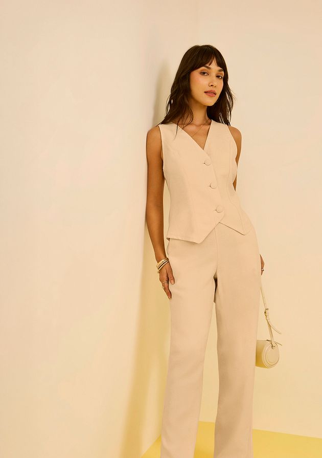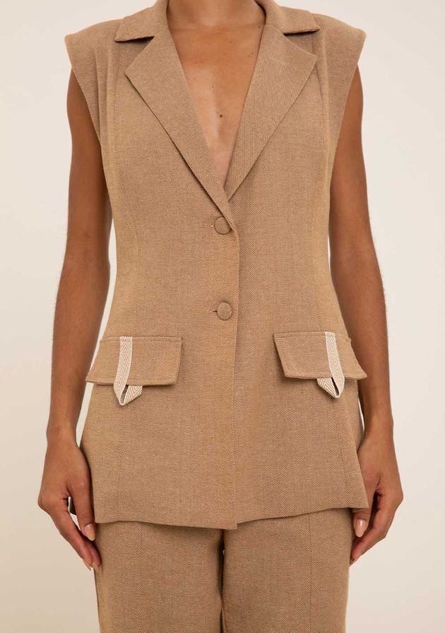 Colete Maria.Valentina Ajustado Sem Manga Padrão Bege