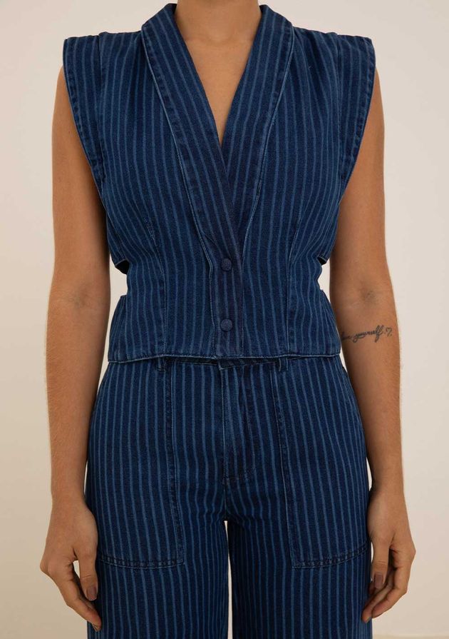 Colete Maria.Valentina Ajustado Sem Manga Padrão Azul