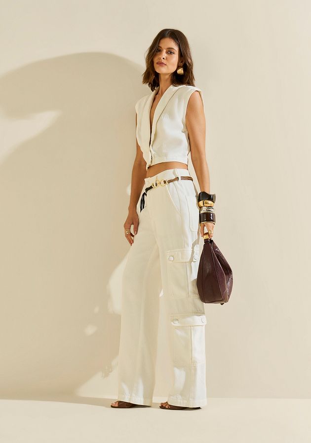 Colete Morena Rosa Ajustado Manga Curta Cropped Off White