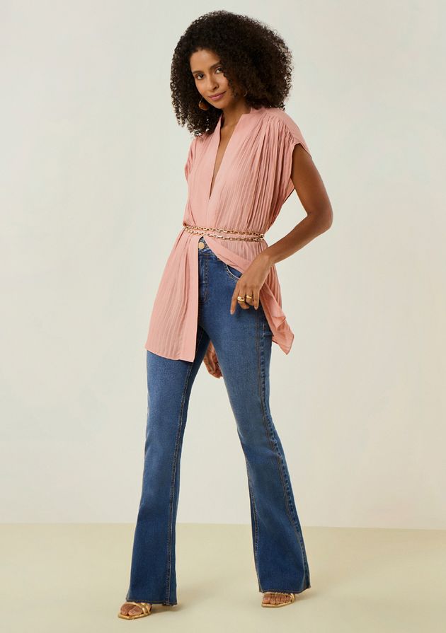 Colete Morena Rosa Solto Manga Curta Alongado Azul