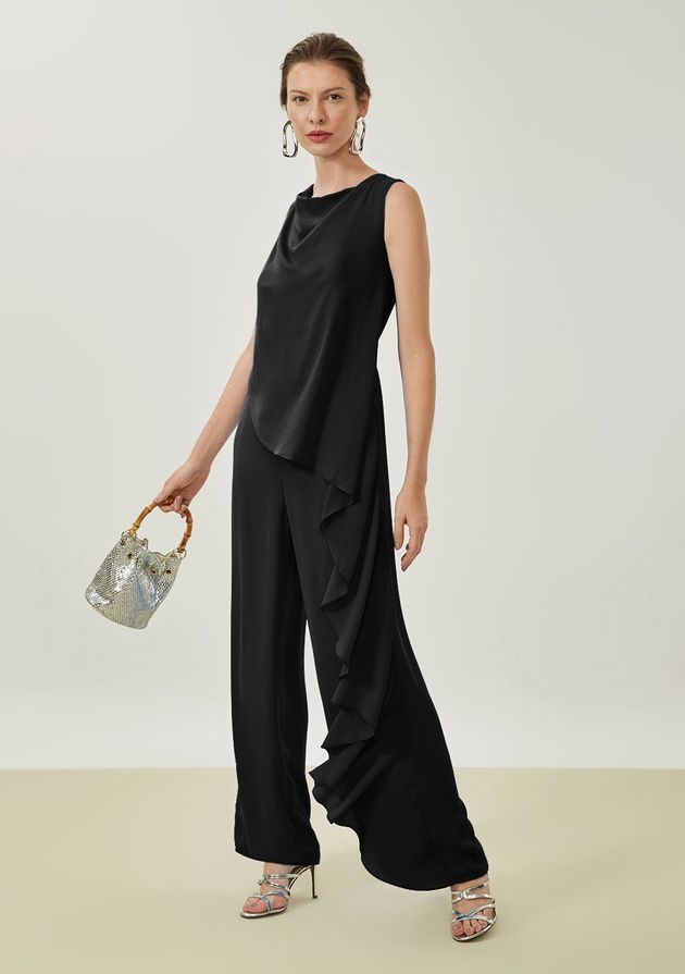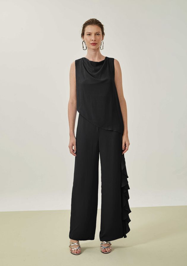 Macacão Maria.Valentina Solto Decote Careca Sem Manga Longo Preto