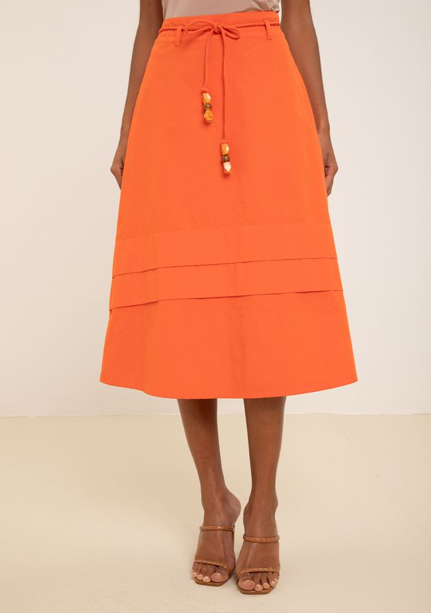 Saia Maria.Valentina Evasê Alta Midi Laranja