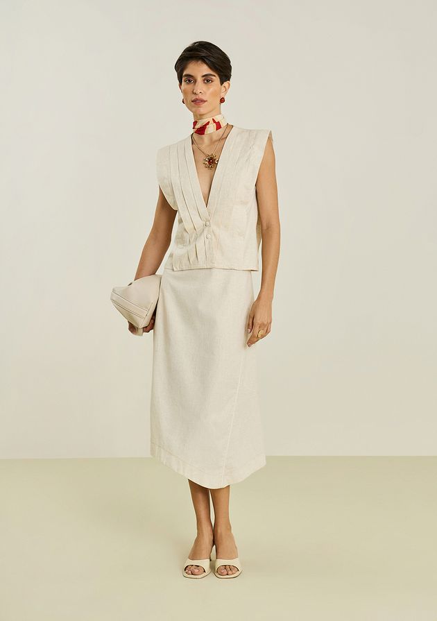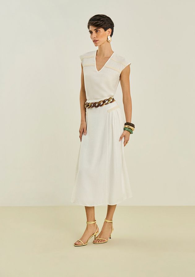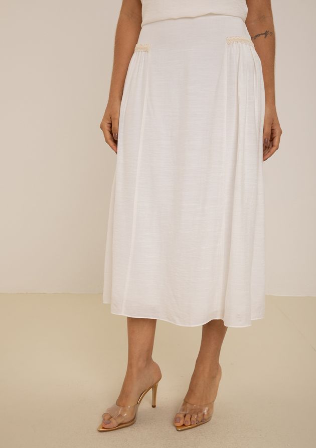 Saia Maria.Valentina Evasê Alta Midi Off White