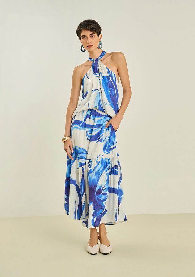 Saia Maria.Valentina Evasê Alta Midi Azul