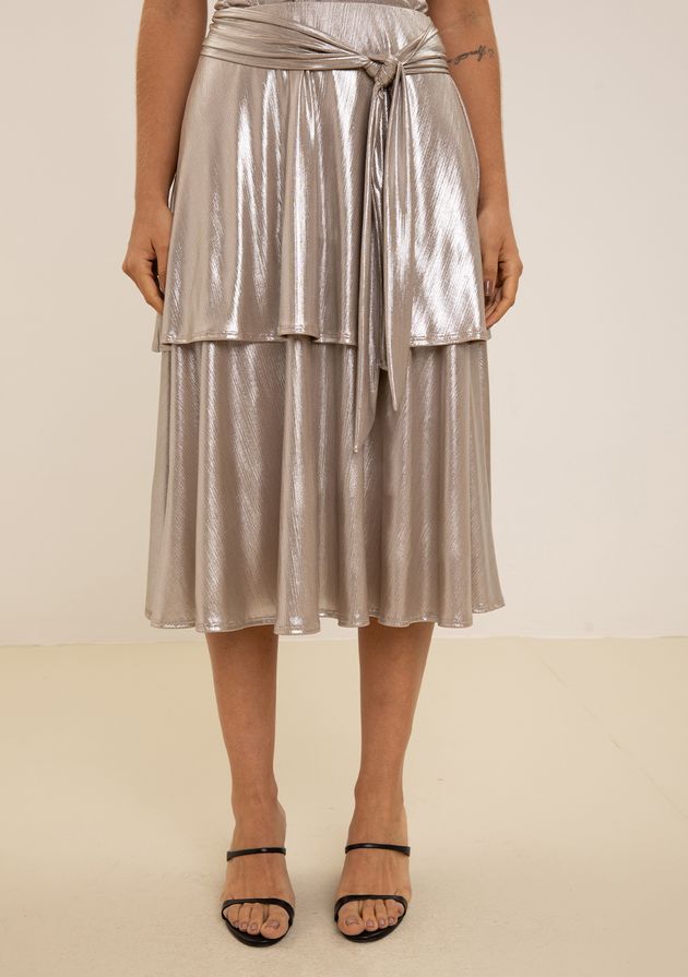 Saia Maria.Valentina Evasê Alta Midi Prata