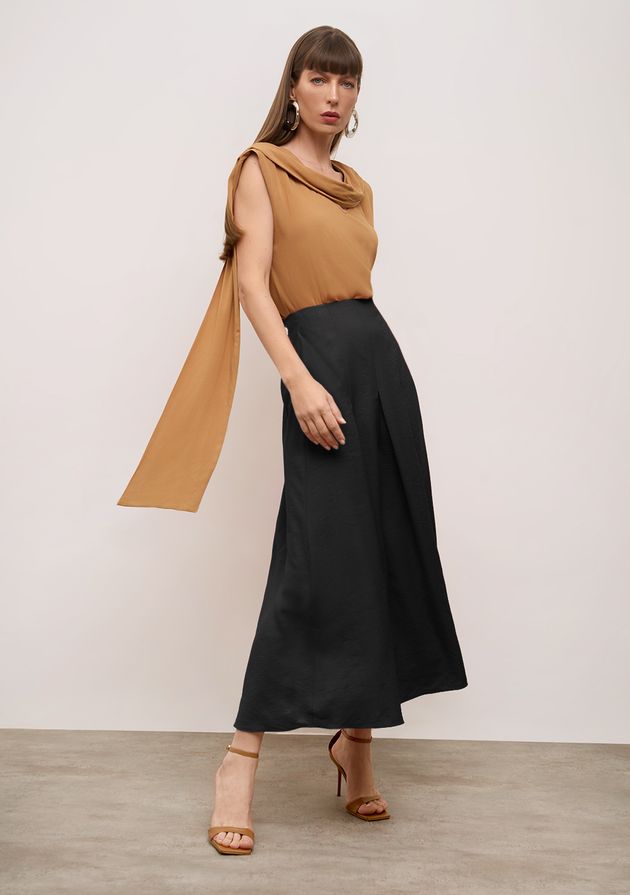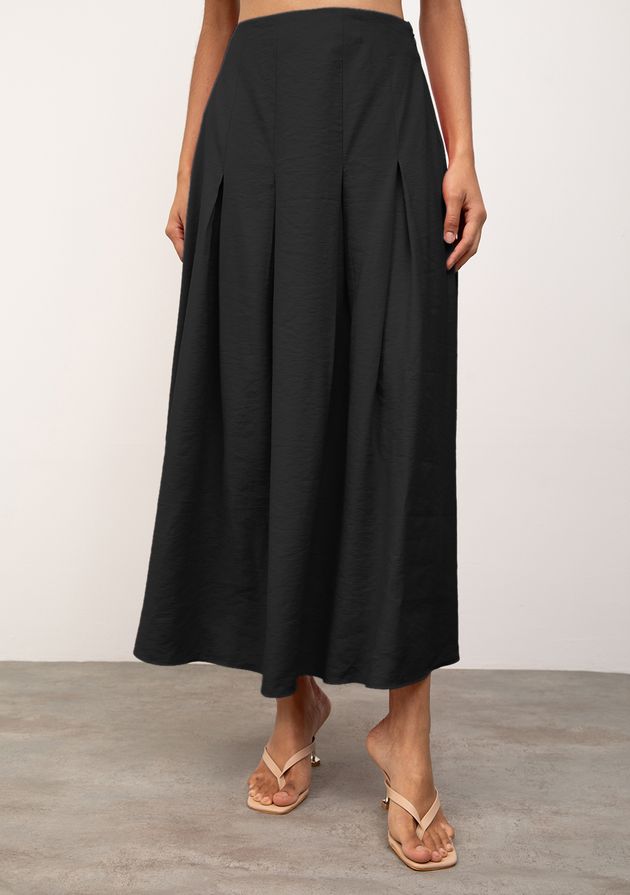 Saia Iódice Evasê Alta Midi Preto