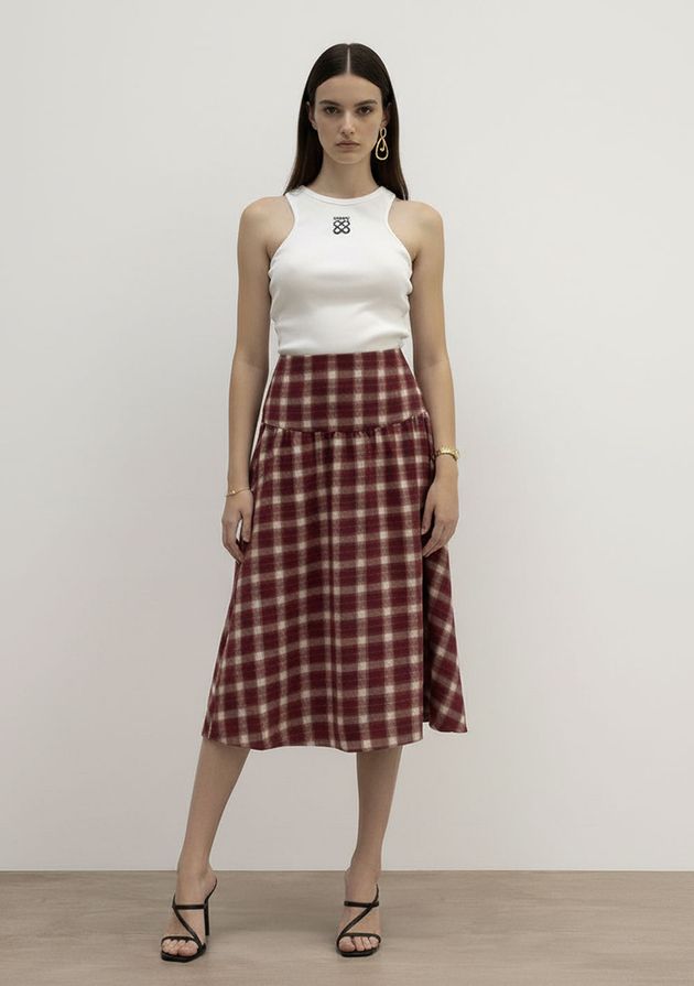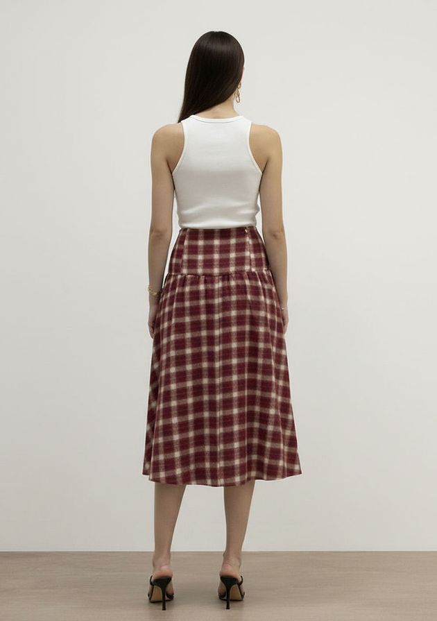 Saia Evasê Alta Midi Bordo