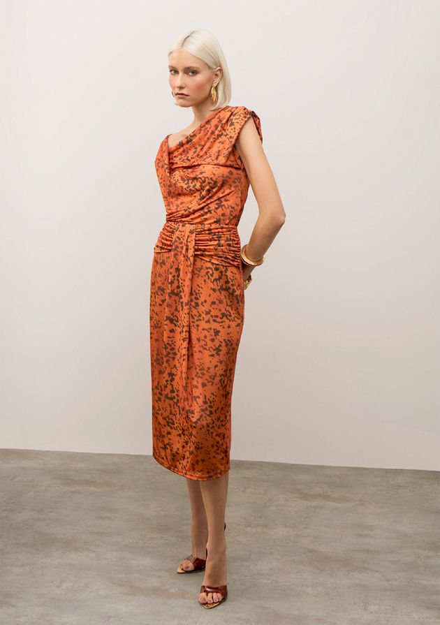 Saia Maria.Valentina Evasê Alta Longa Laranja