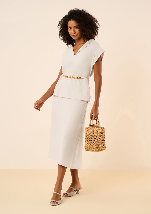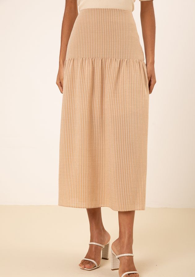 Saia Maria.Valentina Evasê Alta Midi Marrom