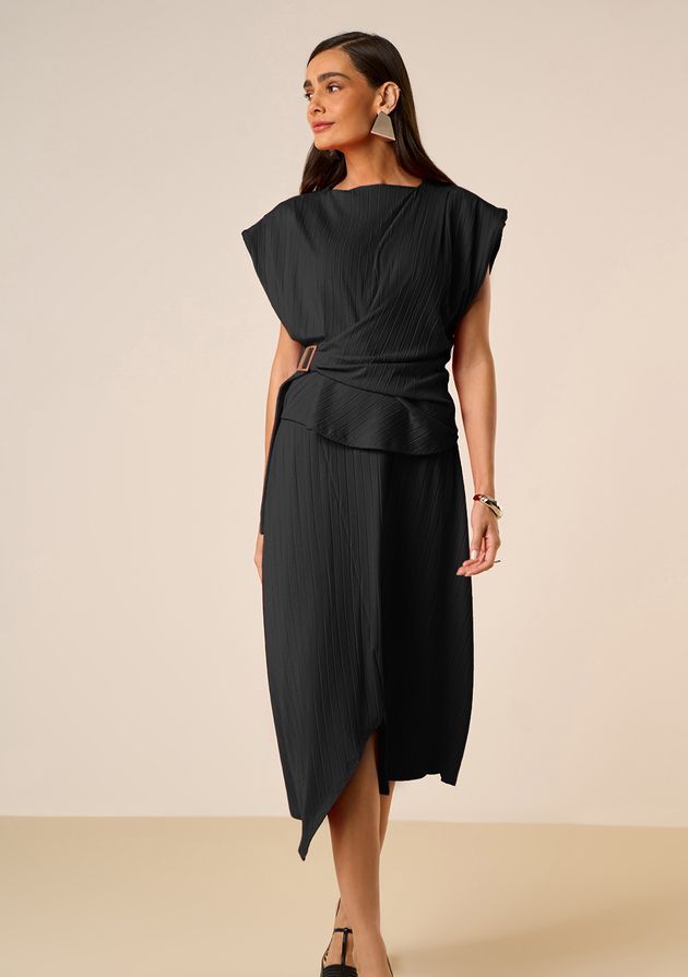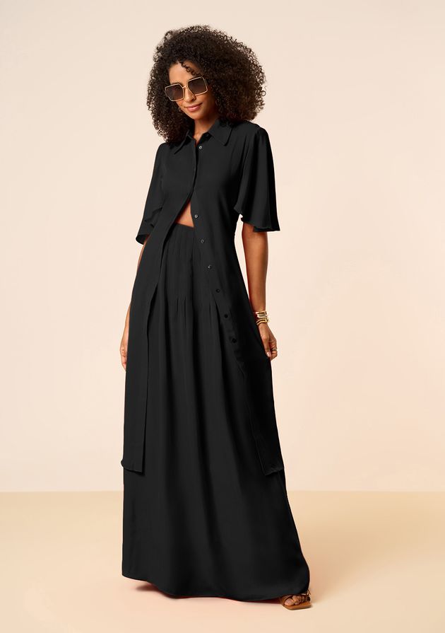 Saia Maria.Valentina Evasê Alta Longa Preto