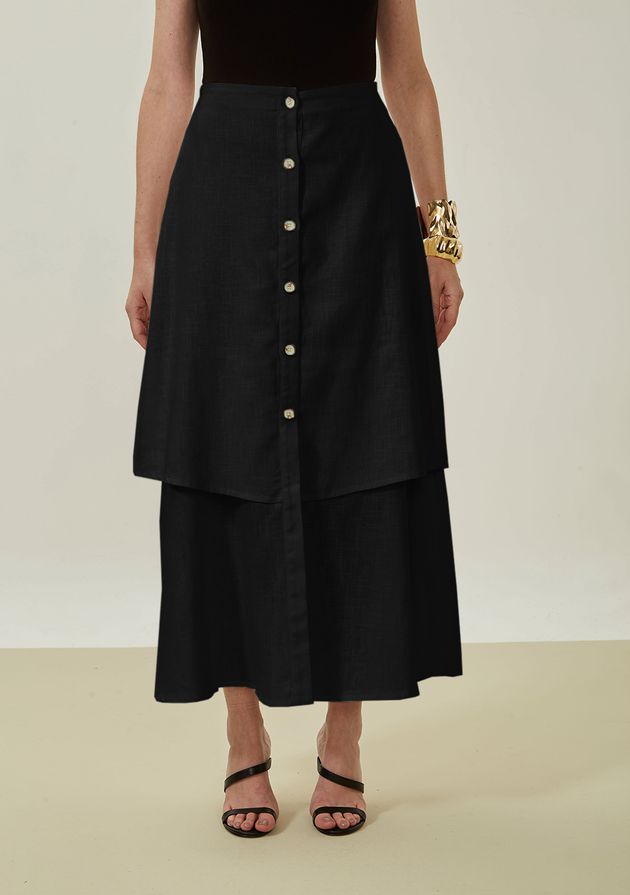 Saia Maria.Valentina Evasê Alta Longa Preto