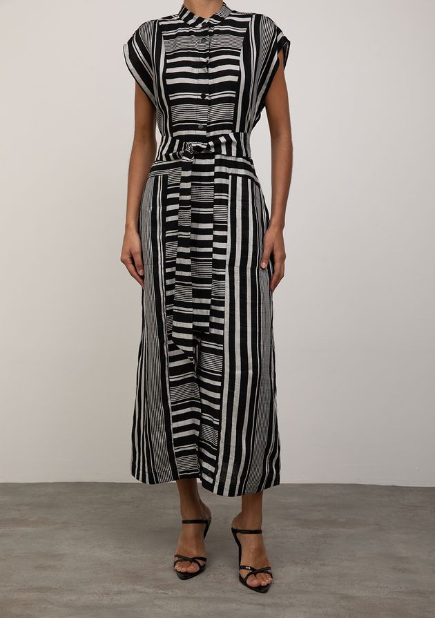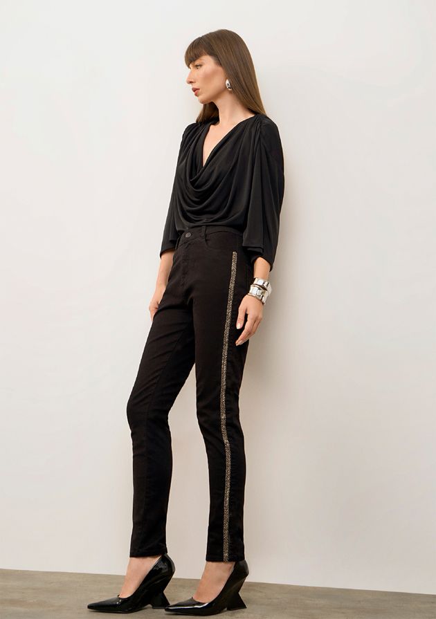 Vestido Iódice Ajustado Gola Clássica Manga Curta Midi Preto