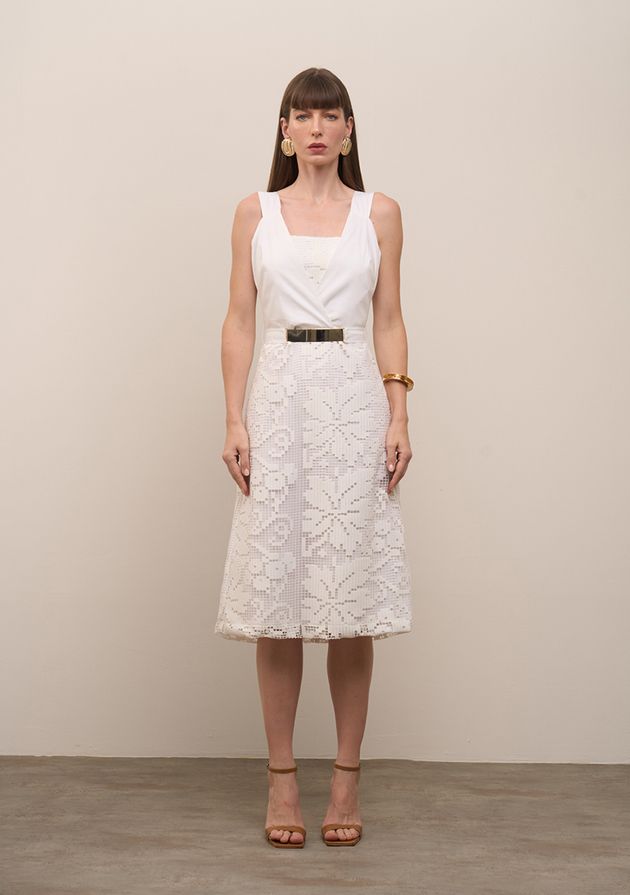 Vestido Iódice Solto Decote V Com Alça Midi Off White