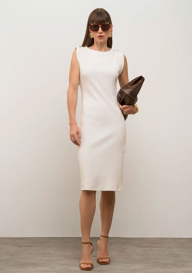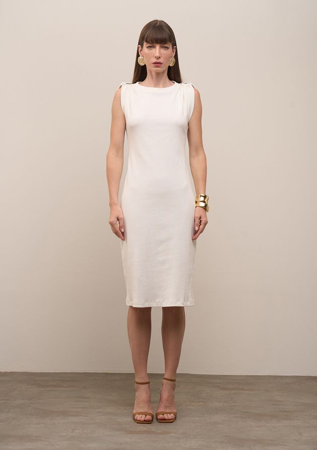 Vestido Iódice Ajustado Decote Careca Sem Manga Midi Off White