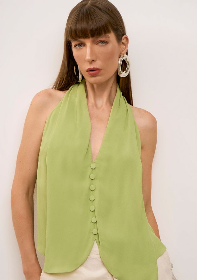 Regata Iódice Solta Decote V Padrão Verde