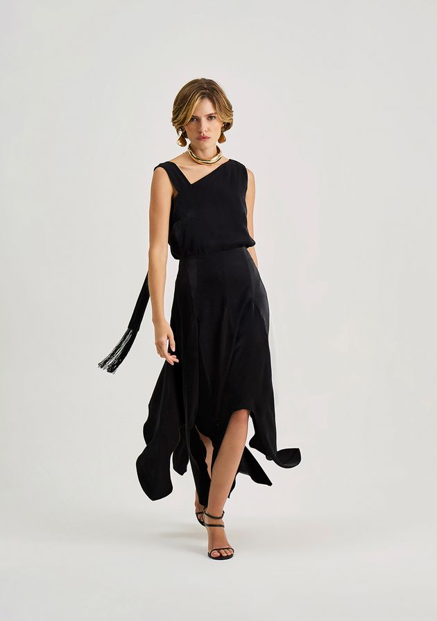 Vestido Iódice Solto Decote Reto Sem Alça Longo Vermelho